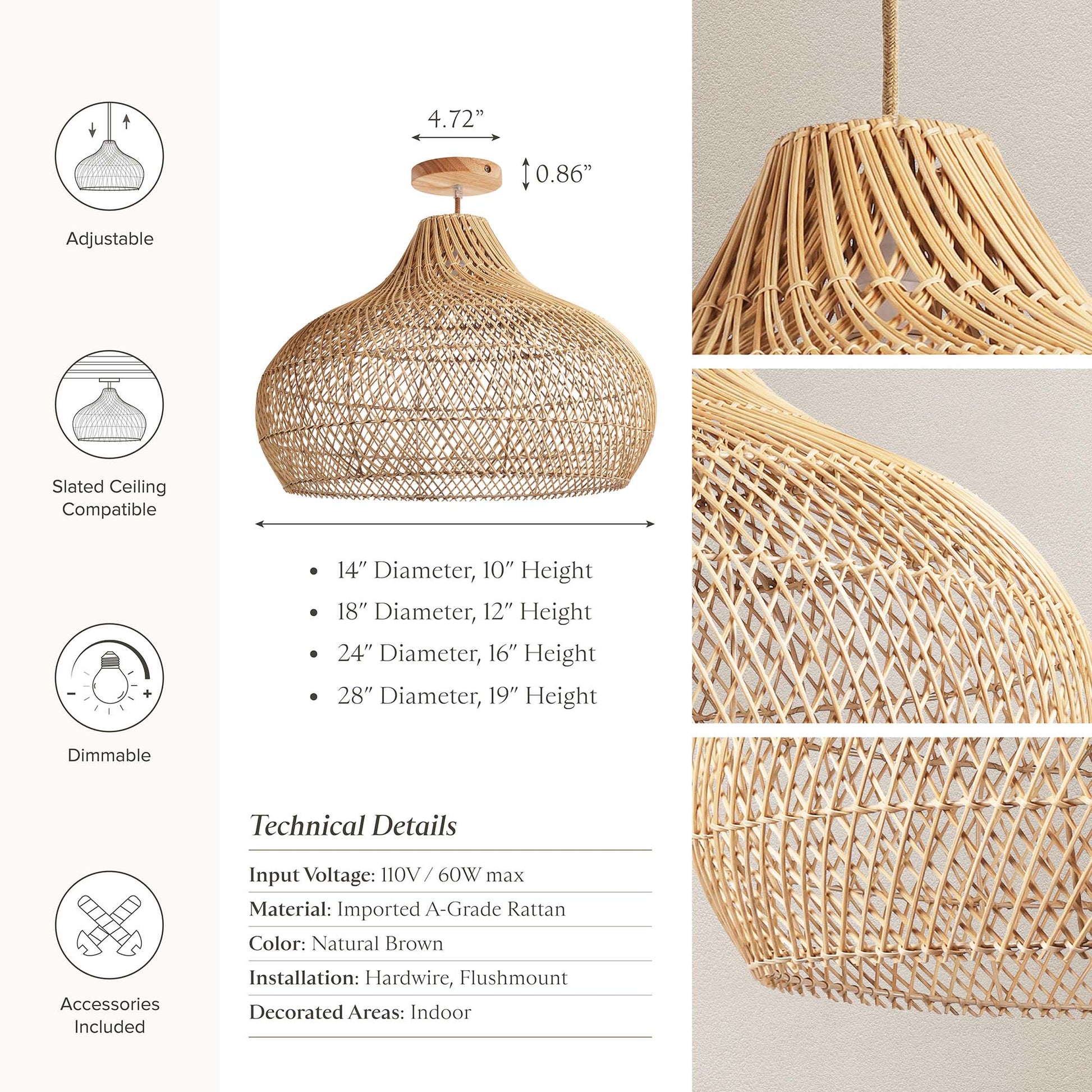 - Material: Organic Rattan